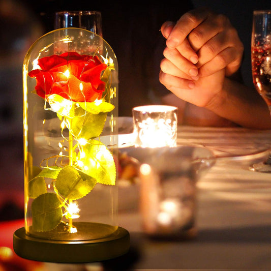 Rose Lamp - Red Glass Rose Light - Mother'S Day Gift for Women - Table Lamp with LED - Contemporary Style - Battery Operated - 10" H X 5.5" W X 5.5" D